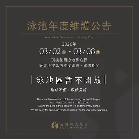 Das 5-Sterne-Grand Banyan Hotel Tainan stellt Ihnen klimatisierten Zimmer zur Auswahl und liegt weniger als 25 Gehminuten von der Zhengxing-Straße entfernt. Vom Hotel sind viele Sehenswürdigkeiten wie Tainan-Park und Si Hua Tang zu Fuß zu erreichen.